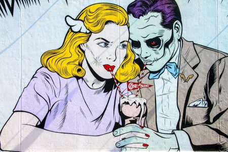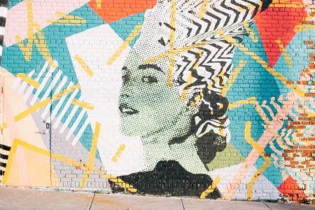 Mural of woman’s neon face